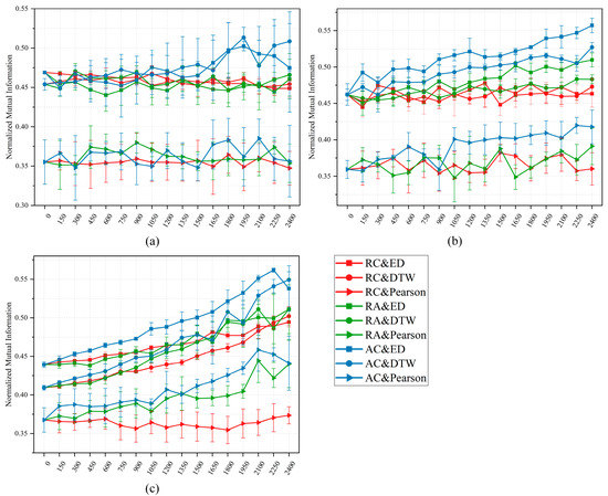 For convenience, in Figure 9, “RC” represents “constraints from random sampling,” “RA” represents “constraints from RSRIA,” and “AC” represents “constraints from APCL.” For example, “RC&ED” represents the results obtained using constraints generated by random sampling and the ED as the similarity criterion.