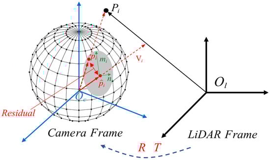 The point P also can be expressed in the coordinate of LiDAR as ; then: