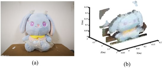 3D imaging experiment of doll. (a) Experiment scene. (b) Colorized point cloud of doll.