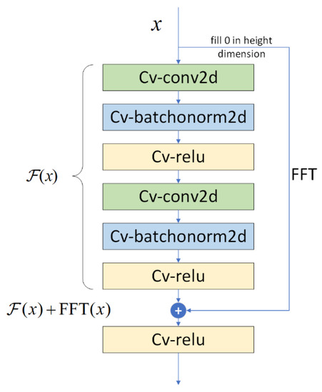 The complex-valued neural network is complicated to train with many parameters. Moreover, a slightly deepened complex-valued network will tend to degenerate or even become divergent. More and more deep learning models utilize the residual learning framework to simplify the training process and achieve good accuracy with a considerable depth in deep complex-valued networks [31,32,37]. In addition, its strength is supported by a reasonable case that identity mappings or closer ones might be the optimal functions to fit in optical computer vision. However, according to the above expert knowledge and analysis, Fourier transform mappings are more likely to be optimal in complex-valued layover detection. Thus, FFT residual learning blocks are the optimal choice to deepen the network and improve layover detection performance.