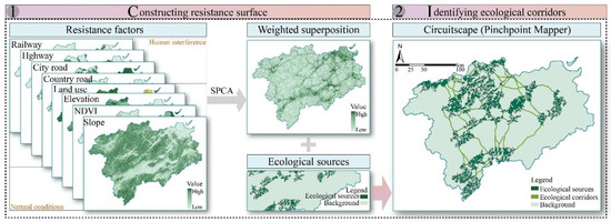 Ecological sources and resistance surfaces were imported into the Linkage Mapper module of Circuitscape 4.0 software to identify ecological corridors. The resistance surface construction and ecological corridor identification processes are shown in Figure 4.