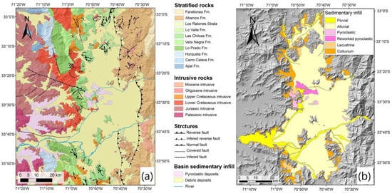 (a) Geological map and (b) Sediment map of Santiago Basin (From Yanez et al. []).