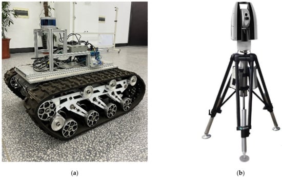 Experimental equipment. (a) shows the mobile robot platform and (b) shows the Leica Geosystems absolute tracker (AT960).
