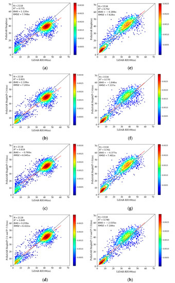 - Wang, C.; Wang, L.; Fu, H.; Xie, Q.; Zhu, J. The impact of forest density on forest height inversion modeling from polarimetric InSAR data. Remote Sens. 2019, 8, 291. [Google Scholar] [CrossRef] [Green Version]