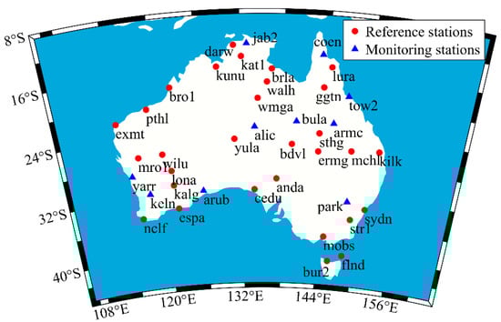 Distribution of the selected reference stations and monitoring stations in Australia.
