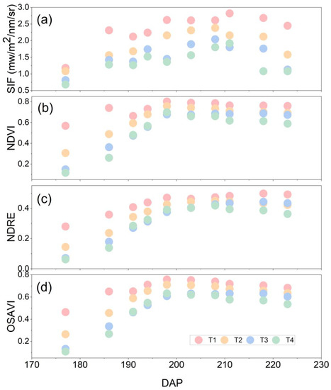 - Song, L.; Guanter, L.; Guan, K.; You, L.; Huete, A.; Ju, W.; Zhang, Y. Satellite sun-induced chlorophyll fluorescence detects early response of winter wheat to heat stress in the Indian Indo-Gangetic Plains. Glob. Chang. Biol. 2018, 24, 4023–4037. [Google Scholar] [CrossRef]