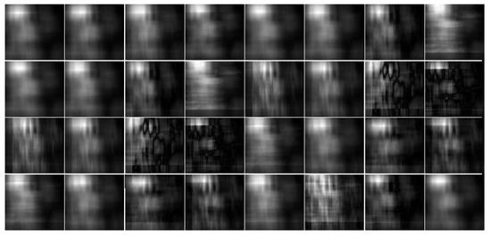 is the input of ResNet50, and E is the feature extracted by ResNet50. Figure 3 shows the first 128 channels of deep features obtained by the experiment. It may be noted that the size of deep features is . m represents the row of the deep features, n represents the column of the deep features, r is the number of channels. Our proposed algorithm uses the deep features extracted by res3d_branch2c, so the output feature’s size of this layer is .