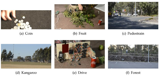 In this research, we use six different video sequences for the performance analysis of our tracking algorithm. The sequences are all from the publicly available hyperspectral dataset in [17]. To test the ability of this algorithm against background clutter (BC), we selected four sequences with a BC challenge. In order to analyze the generality of the algorithm, the selected sequences also contain the illumination variation (IV), motion blur (MB), occlusion (OCC), scale variation (SV) and out-of-plane rotation (OPR) challenges. The RGB images of these video sequences are shown in Figure 10. Table 1 represents the detailed information of the six selected video sequences.