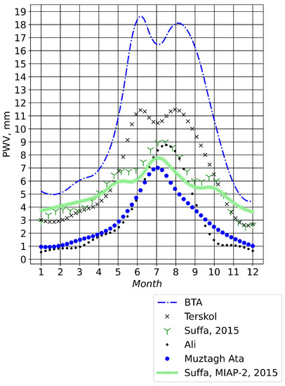 5. Seasonal Variations of PWV at the Ali, Muztag-Ata, Suffa, Bta and Peak Terskol