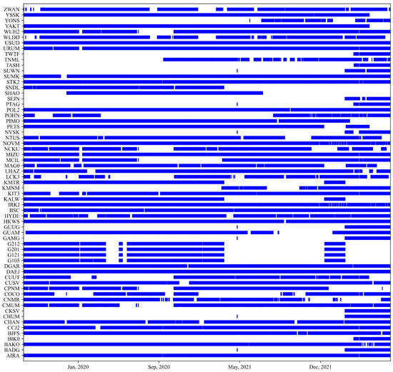 - Bos, M.S.; Fernandes, R.M.S.; Williams, S.D.P.; Bastos, L. Fast error analysis of continuous GNSS observations with missing data. J. Geod. 2013, 87, 351–360. [Google Scholar] [CrossRef]