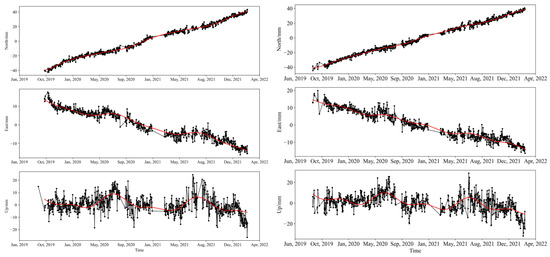 - Li, W.; Li, Z.; Jiang, W.; Chen, Q.; Zhu, G.; Wang, J. A New Spatial Filtering Algorithm for Noisy and Missing GNSS Position Time Series Using Weighted Expectation Maximization Principal Component Analysis: A Case Study for Regional GNSS Network in Xinjiang Province. Remote Sens. 2022, 14, 1295. [Google Scholar] [CrossRef]