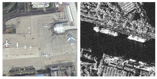 Typical remote sensing images. (Left): Optical remote sensing image with airport objects; (Right): SAR image with ship objects.