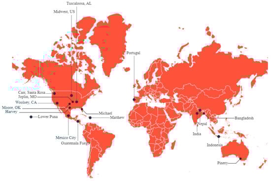- Gupta, R.; Hosfelt, R.; Sajeev, S.; Patel, N.; Goodman, B.; Doshi, J.; Heim, E.; Choset, H.; Gaston, M. XBD: A dataset for assessing building damage from satellite imagery. arXiv 2019, arXiv:1911.09296. [Google Scholar]