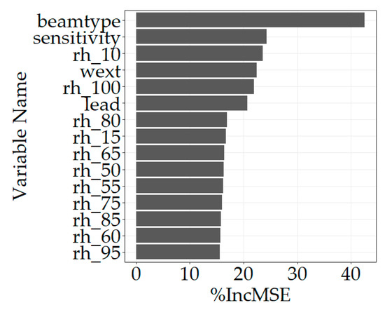 Importance of RF variables (fifteen most important) using mean decrease accuracy (%IncMSE).