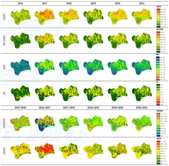 Dynamics of the spectral indices calculated for the period of 2016–2021.