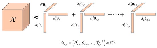 The notations used in this paper are maintained with Kolda and Bader [9] in the literature. Firstly, the , , , represent the zero-order tensor (scalar), the first-order tensor (vector) of size , the second-order tensor (matrix) of size , and the N-order tensor (N > 2) of size in the real Euclidean space, respectively. Similarly, replacing with represents the tensor in the complex Euclidean space. The N-order tensor can be expanded in matrix form in N directions, where the mode-n unfolding is represented by . In addition, several matrix multiplication operations need to be mentioned: the Hadamard product operator , the Kronecker product operator , and the Khatri–Rao product operator . The specific meaning of these symbols will be given in Appendix A.