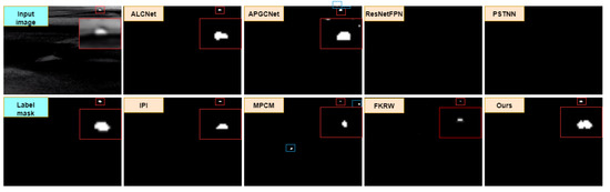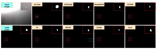 - Influence of sub-pixel convolutional upsampling. A high-resolution prediction map can effectively improve the effect of infrared small-target detection. In this study, we used subpixel convolution in a superresolution reconstruction task to improve the resolution of the prediction map. We studied and compared subpixel convolution and linear interpolation in this study. As shown in Table 7, the subpixel convolution network performance is outstanding. This is because of the traditional linear interpolation in spatial information only and in the neural network; correlation and interaction between each channel cannot be ignored, and the subpixel convolution can be a relatively good application of these relations through channel expansion. It is then reconstituted into the image space and the information between channels is effectively used to achieve better results than traditional sampling.