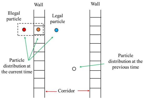 In Equation (14), represents the detection result of the particle “not going through the wall” method.