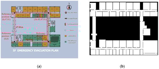 Digital map on the fifth floor. (a) Architectural plan. (b) Available binary maps.