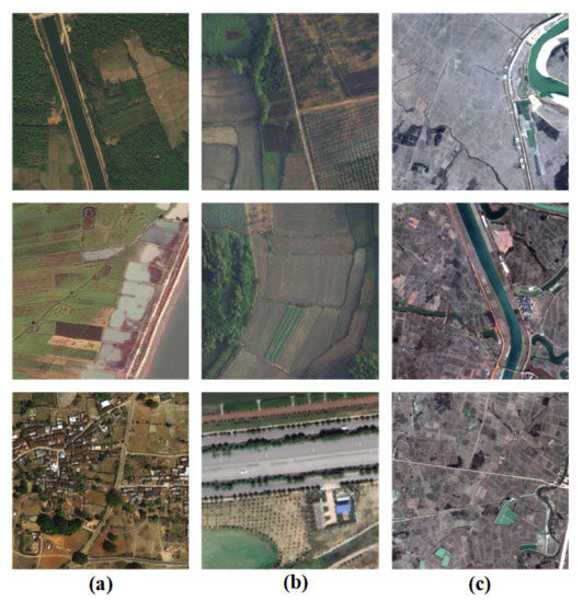 - Lu, X.; Gong, T.; Zheng, X. Multisource compensation network for remote sensing cross-domain scene classification. IEEE Trans. Geosci. Remote Sens. 2019, 58, 2504–2515. [Google Scholar] [CrossRef]
