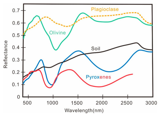 - Staid, M.I.; Pieters, C.M.; Besse, S.; Boardman, J.; Dhingra, D.; Green, R.; Head, J.W.; Isaacson, P.; Klima, R.; Kramer, G.; et al. The mineralogy of late stage lunar volcanism as observed by the Moon Mineralogy Mapper on Chandrayaan-1. J. Geophys. Res. 2011, 116, E00G10. [Google Scholar] [CrossRef]