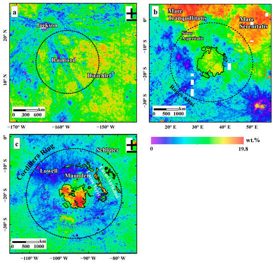 - Lucey, P.G.; Blewett, D.T.; Hawke, B.R. Mapping the FeO and TiO2 content of the lunar surface with multispectral imagery. J. Geophys. Res. Planets 1998, 103, 3679–3699. [Google Scholar] [CrossRef]
