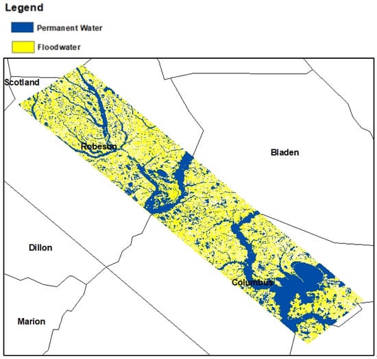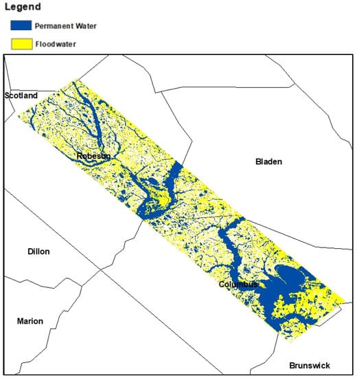 Flooding is one of the most frequent natural disasters that causes damage to properties, destruction to crops, and even death to humans and animals every year worldwide. In 2016, flooding affected more than 74 million people worldwide, causing 4720 deaths and more than $57 million in economic losses [1]. Global climate change causes extreme weather events that can increase flood intensity and frequency [2,3]. As climate change continues to rise, many urban and rural areas will be prone to frequent floods, especially in low-elevated coastal areas [4]. Rapid flood extent mapping helps flood relief programs and emergency management agencies to direct their resources to the most affected areas [5,6,7,8].