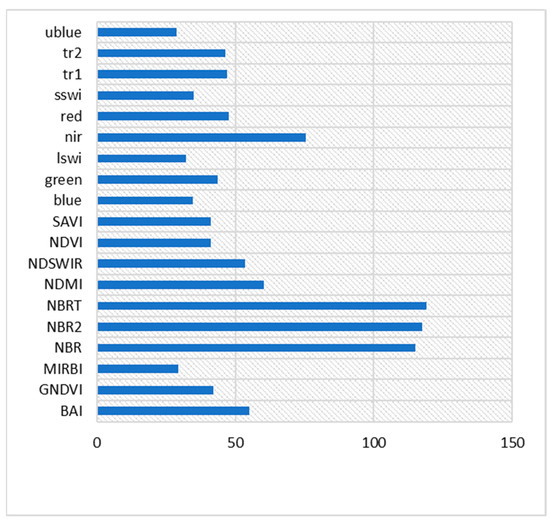 The results revealed that 742 and 642 points were correctly classified in the unburned and burned classes, respectively. Moreover, 19 and 41 points were incorrectly assigned to the burned and unburned classes, respectively. According to Figure 9, the NBRT, NBR2, and NBR features had the highest importance in the RF classifier. In general, the RF had higher accuracy compared to the NN algorithm (compare Table 5 and Table 6). However, both algorithms were subject to the commission errors in identifying the burned and unburned areas, potentially due to several factors such as the burned-like lands (i.e., dry, senesced, or dead vegetation as well as harvested agricultural lands) and different types of land cover classes with similar spectral response.