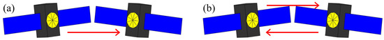 In our simulation, we considered two types of possible connection between satellites (Figure 1) [12,34]: