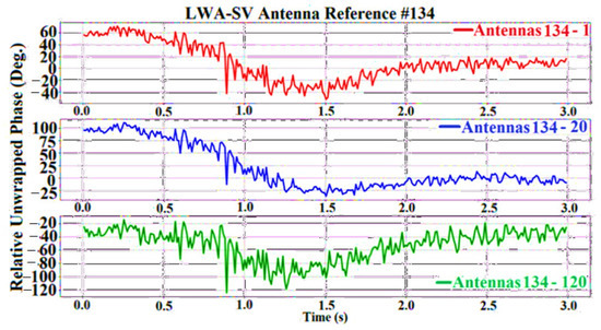 The graphic shows an example of relative unwrapped phases vs. time in 3 s for LWA-SV.