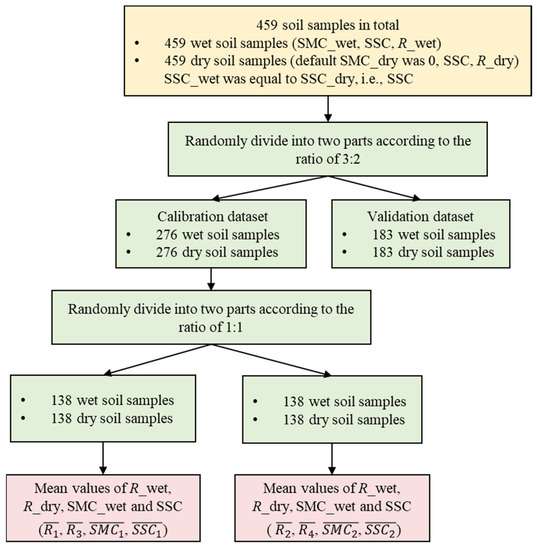 - Du, R.Q.; Chen, J.Y.; Zhang, Z.T.; Chen, Y.W.; He, Y.J.; Yin, H.Y. Simultaneous estimation of surface soil moisture and salinity during irrigation with the moisture-salinity-dependent spectral response model. Agric. Water Manag. 2022, 265, 107538. [Google Scholar] [CrossRef]