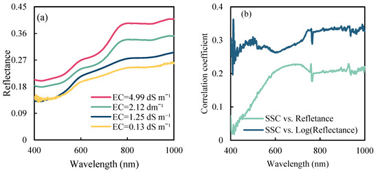3.2. Soil Hyperspectral Reflectance at Different SSC Levels