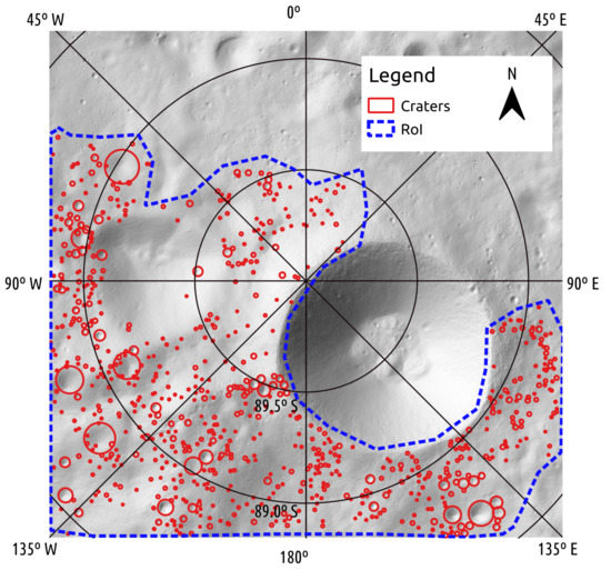 - Kneissl, T.; van Gasselt, S.; Neukum, G. Map-projection-independent crater size-frequency determination in GIS environments—New software tool for ArcGIS. Planet. Space Sci. 2011, 59, 1243–1254. [Google Scholar] [CrossRef]