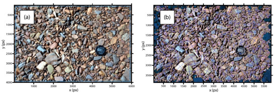 A series of spaced ground control points (GCPs) both within the channel of interest and at the survey margins [41], were used to geolocate the final DEM. GCPs consisted of visible tiles measuring 0.5 m × 0.5 m or fluorescent chalk-based paint spaced closely throughout the survey sites. An RTK-GPS was used to geolocate all GCPs to Australian height datum (AHD) with high absolute accuracies (0.02 m horizontal and 0.04 m vertical). The placing, geolocating, and retrieval of GCPs is the most time-consuming aspect of the survey approach. The use of spray on fluorescent chalk-based paint reduced the overall time that GCP surveying took during the field survey and allowed for frequent placement across the entire survey area. The paint markings will be temporary, remaining visible for the survey period but harmlessly washing away over flood events.