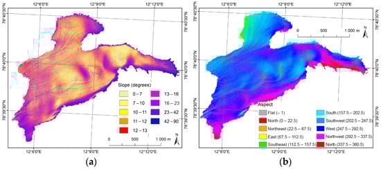 Surface characteristics of Irenebreen. (a) Slope; (b) aspect.