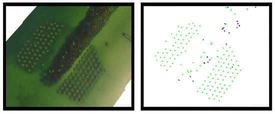 All orthophotos were compiled from the vertical images taken by UAV and using Agisoft’s Metashape software. This software is used for automatic image processing and creates a dense point cloud using image matching and image georeferencing algorithms (Figure 5).