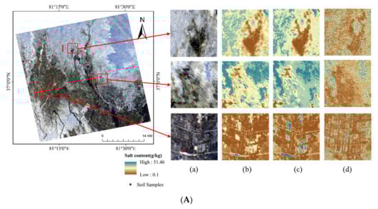 - Wang, F.; Yang, S.; Yang, W.; Yang, X.; Jianli, D. Comparison of machine learning algorithms for soil salinity predictions in three dryland oases located in Xinjiang Uyghur Autonomous Region (XJUAR) of China. Eur. J. Remote Sens. 2019, 52, 256–276. [Google Scholar] [CrossRef] [Green Version]