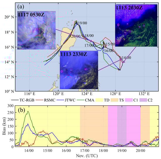 2.3. Application of TC-RGB Composites in TC Center Positioning