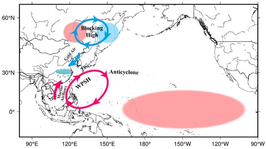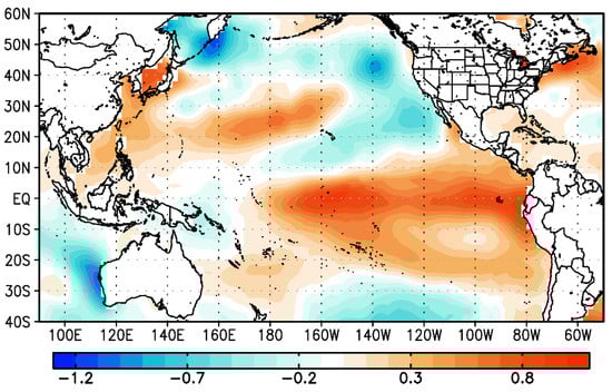 Numerous studies have proven that Pacific SSTAs are closely associated with the formation of AC anomalies [, , , ; ]. Notably, SSTAs occur earlier than AC anomalies; therefore, SSTAs have been widely recognized as an indicator of unusual AC [,,]. For example, Pacific SSTAs have become a crucial indicator for researchers seeking to predict summertime AC anomalies and precipitation in the Yangtze River valley [, ].