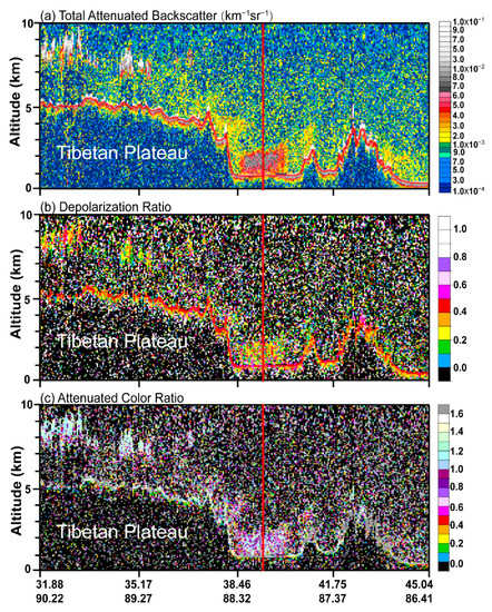 - Huang, J.; Minnis, P.; Yi, Y.; Tang, Q.; Wang, X.; Hu, Y.; Liu, Z.; Ayers, K.; Trepte, C.; Winker, D. Summer dust aerosols detected from CALIPSO over the Tibetan Plateau. Geophys. Res. Lett. 2007, 34, 1–5. [Google Scholar] [CrossRef]