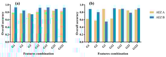 The overall accuracy of different feature combinations in (a) 2017 and (b) 2018.