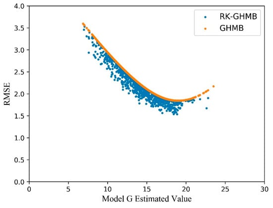 The uncertainties for the selected 1000 LiDAR reference data are shown in Figure 11. From Figure 11, we can clearly see that RK-GHMB can obtain a lower RMSE value, and the uncertainties have a similar changing trend, with the RMSE being larger at both higher and lower predicted values.