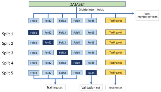 The experiments have been carried out using the cross-validation technique to ensure the integrity and accuracy of the models. Cross-validation is a widely used technique for assessing models as the performance evaluation is carried out on unseen test data [], the method also presents the advantage of being a low bias resampling method [].