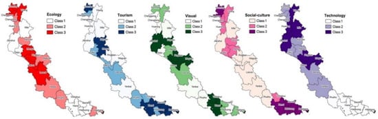 Zonal statistic of the landscape value in the study area. The classes are divided according to their relative values in the study area. Class 1 means the county with a low average value; class 2 means a middle average value; class 3 means a high average value of landscape.