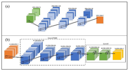 CNN Net (a) and ConvLSTM Net (b) structures.