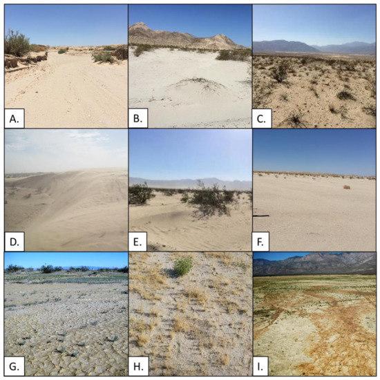 4. Sweeney, M.R.; McDonald, E.V.; Etyemezian, V. Quantifying dust emissions from desert landforms, eastern Mojave Desert, USA. Geomorphology 2011, 135, 21–34. [Google Scholar] [CrossRef]