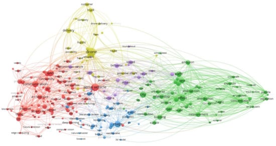 Figure 1 shows the author keywords visualization related to UAV use for traffic monitoring. It was obtained using VOS viewer software and it can be observed that several clusters are formed according to the author keywords: aerial vehicle, drone, traffic, image, communication.