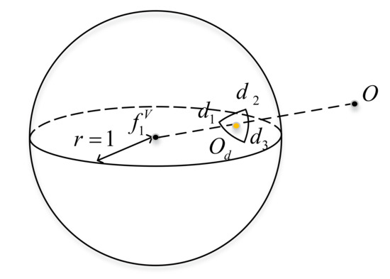 As shown in Figure 4, is a feature point in the visual frame , and is a group of depth point clouds in the lidar frame . Projecting onto a unit spherical surface with as the spherical center to obtain a projection point :