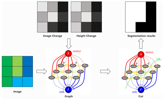 - Boykov, Y.; Veksler, O.; Zabih, R. Fast approximate energy minimization via graph cuts. IEEE Trans. Pattern Anal. Mach. Intell. 2001, 23, 1222–1239. [Google Scholar] [CrossRef] [Green Version]