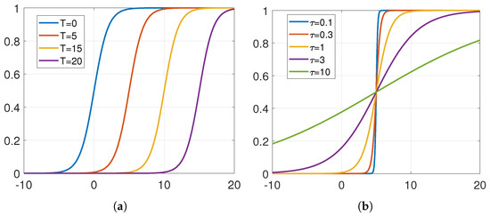 Sigmoid functions with (a) different T and (b) different .